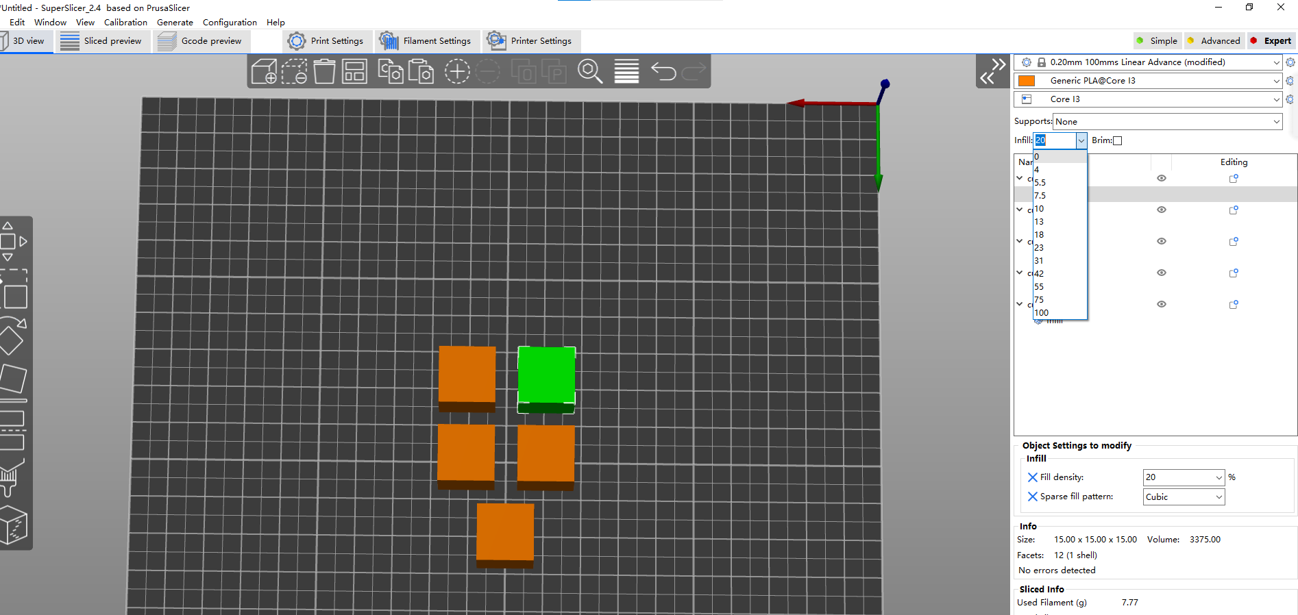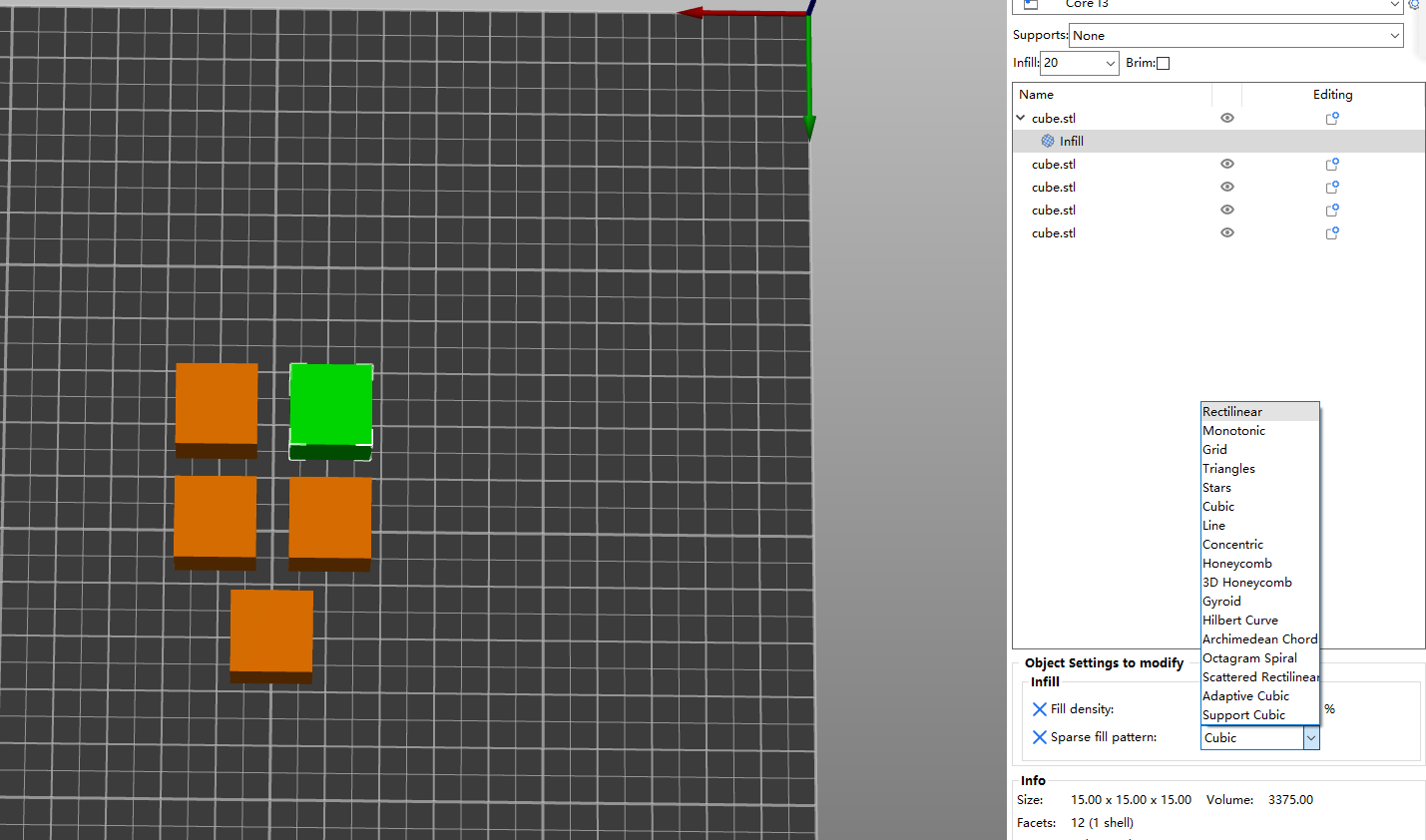• follow the procedure to learn the basic knowledge of infill. shell and infill pattern